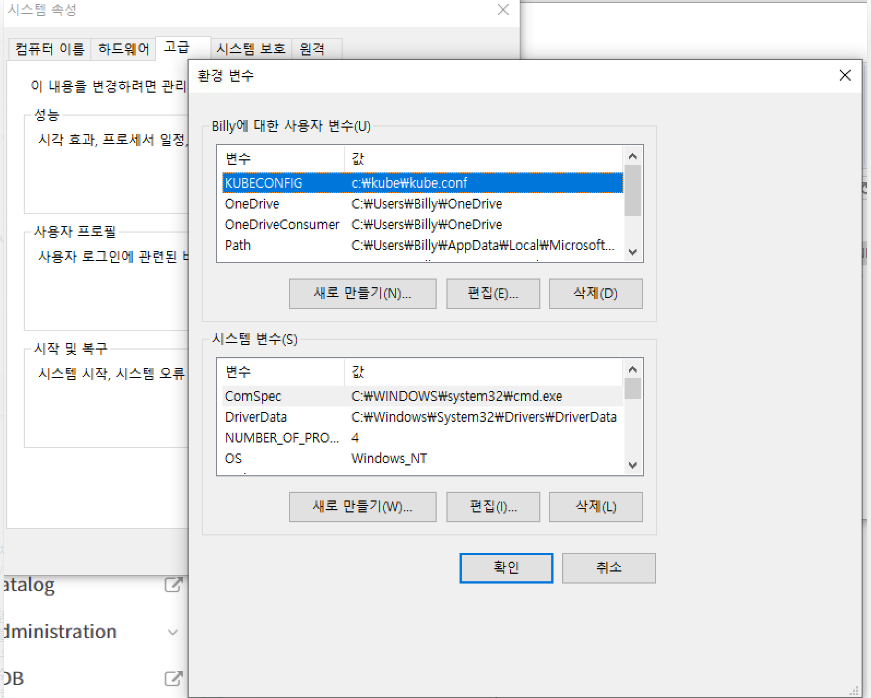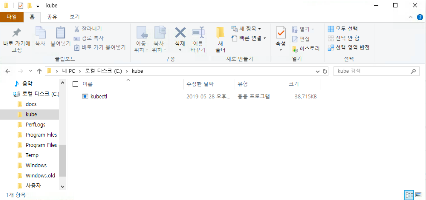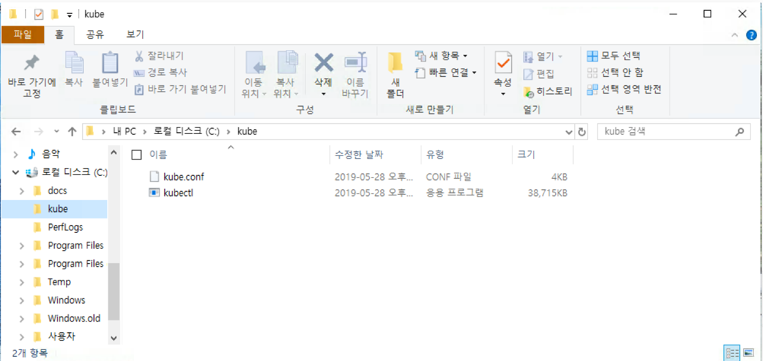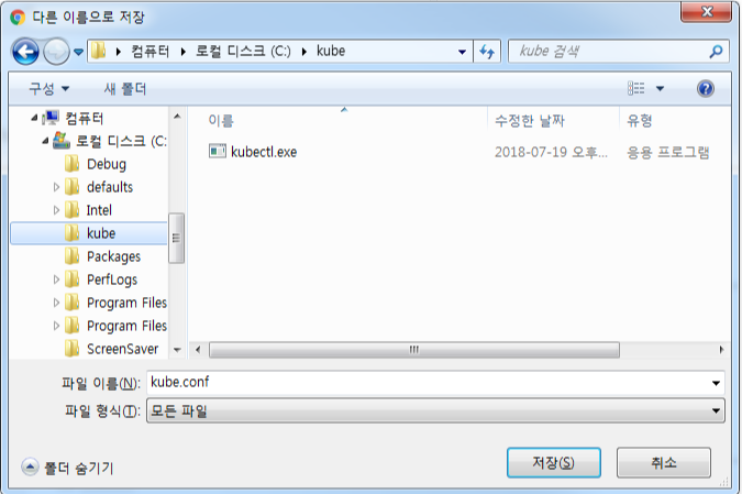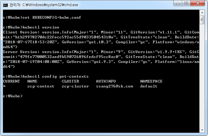 # 설정 파일 사용 여부 설정 c:\kube> set KUBECONFIG=c:\kube\kube.conf