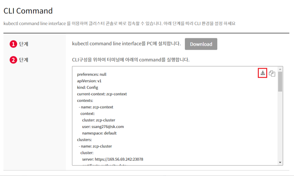 To connect using kubectl installed on a ZCP cluster, you need related settings such as cluster server information and authentication token. These values are managed in the Kubernetes configuration file.