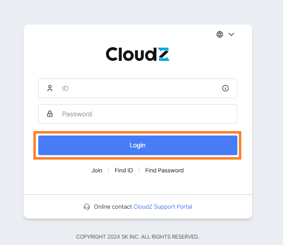 Enter the correct Cloud Z Group account information. A Cloud Z account is a unified login account required to use Cloud Z-related services. Click the login button.
